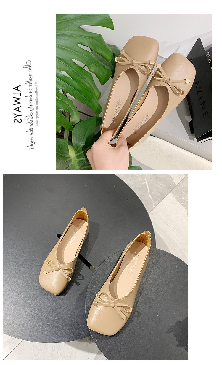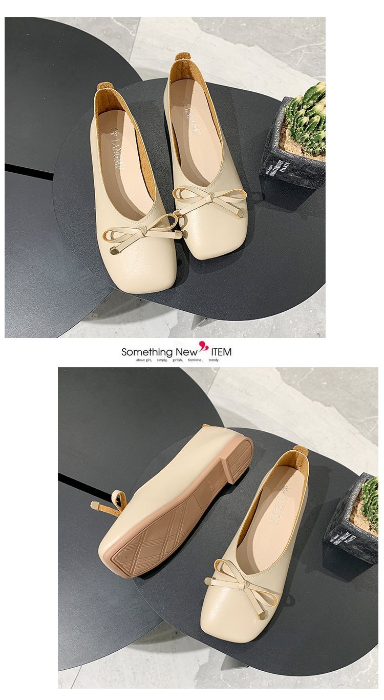 2021 autumn new Korean flat sole single shoes Square Head shallow mouth pea shoes bow soft bottom grandma women's shoes wholesale