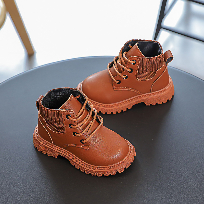 Korean version children's Martin boots girls' short boots lace up boys' Knight boots non slip soft bottom baby boots fashion generation hair